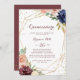 Der geometrische, rustikale Glitzer Quinceañera lädt zu einer modernen 15. Geburtstagsfeier ein. Das Design verfügt über handgezeichnet Aquarell lila, Marine, rot, bordeauxrot, Marineblastiche Blume, grün und gold Blätter Glitzer an einem eleganten geometrischen Rahmen.