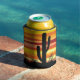 Abstrakte geometrische Sonnenuntergangsbild der Wüste mit gelben, orangen und roten diagonalen Streifen und Kaktusdekoration. Fügen Sie Ihren Namen/Monogramm hinzu oder löschen Sie den Text.