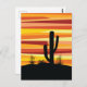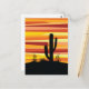 Abstrakte geometrische Sonnenuntergangsbild der Wüste mit gelben, orangen und roten diagonalen Streifen und Kaktusdekoration. Fügen Sie Ihren Namen/Monogramm hinzu oder löschen Sie den Text.