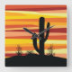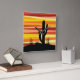 Abstrakte geometrische Sonnenuntergangsbild der Wüste mit gelben, orangen und roten diagonalen Streifen und Kaktusdekoration. Fügen Sie Ihren Namen/Monogramm hinzu oder löschen Sie den Text.