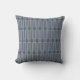 Das Kissen weist auf der einen Seite ein abstraktes geometrisches Muster auf und ist auf der anderen Seite schlicht.
