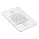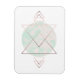 Dieses Kunstwerk zeigt Dreiecke, die in einem geometrischen Design aus metallischer Rose umrissen sind.