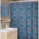 Schön dunkelrot, blau, lila und ein wenig aquamarin betont die geometrischen Formen in diesem abstrakten Muster. Fügen Sie ein paar lustige Wirbel hinzu und dieser Duschvorhang verleiht Ihrem Bad einen einzigartigen Stil.