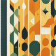 Feines geometrisches Design mit Kreisen, Diamanten und Dreiecken in warmen Orange-, Grün- und Gelbtönen. Das symmetrische Layout schafft eine moderne, lebendige Ästhetik, die perfekt für Wandkunst oder Drucke geeignet ist.
