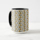 Dieses moderne Muster der Mitte des Jahrhunderts kennzeichnet ein Gold und ein Schwarzgeometrisches Blumenmuster.
