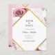 Geometrische, blumengeschmückte Save the Date-Budgetkarte mit einer rosa Rosa-Blume mit einem geometrischen Rahmen für den Goldenen Effekt. Dieses elegante Layout aus der Kollektion "Moderne Floral und Geometrie" zeigt Ihre Ankündigungsdetails in einer stilvollen Schrift und moderner Typografie mit einem reichen Bouquet auf weißem Hintergrund. Sie können diese Karte ganz einfach anpassen, indem Sie oben auf den Knopf "Personalisieren" klicken. Moderne, skriptschwarze Typografie, moderne, einfache, weiße Blume, rosa Goldhochzeit, rett Datum,