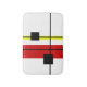 Moderne Kunst abstraktes geometrisches Design mit schwarzen, roten, gelben Linien und schwarzen Quadraten auf weißem Hintergrund