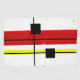 Moderne Kunst abstraktes geometrisches Design mit schwarzen, roten, gelben Linien und schwarzen Quadraten auf weißem Hintergrund
