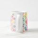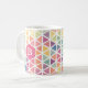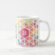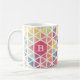 Erfrischend mit dieser farbenfrohen, pastellfarbenen, gemusterten Tasse mit einem Monogramm. Das Muster zeigt Pinke, Gelb, Grüntöne, Blues und Purpur.
