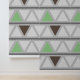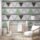 Dieses Tapeten-Design zeichnet sich durch ein modernes und geometrisches Dreiecksmuster aus. Die Dreiecke sind in waagerechten Reihen angeordnet, abwechselnd in den Farbtönen Grün, Braun und Hellgrau, wodurch ein optisch ansprechendes und ausgewogenes Aussehen entsteht. Der Hintergrund ist weich, hellgrau und ergänzt die abgedämpften Töne der Dreiecke. Das geometrisch wiederholte Muster verleiht dem Raum ein Gefühl von Ordnung und Eleganz, was es zu einer exzellenten Wahl für ein zeitgenössisches und stilvolles Zimmer macht. Diese Tapete ist ideal für Schlafzimmer, Wohnzimmer oder jeden Raum, der von einer Touch moderner Eleganz profitieren könnte.