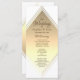 Einfaches, modernes, elegantes, weißes Hochzeitsprogramm mit modernem Drehbuch und geometrischem Rahmen aus Goldfolie. Perfekte Wahl für zeitgenössische Hochzeiten!