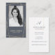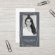 Elegantes und berufliches Foto Layout Visitenkarten Design mit einem Graustufen-Foto-Platzhalter in das Design integriert, um Ihr eigenes Foto-Portrait anzuzeigen. Reines, minimales Layout mit stilvollen Imitaten goldenen Linien, die einen modernen Rahmen um den Platzhalter des Fotos schaffen. Der graue Hintergrund verleiht dem Ganzen ein elegantes Aussehen. Personalisieren Sie Ihre Daten mit Ihrem Namen oder Firmennamen. Die Rückseite ist in einem minimalistisch-puristischen Stil mit elegantem Imitat-Monogramm-Design und Kontaktinformationen in einem sauberen, modernen Layout entworfen. Sie können die Hintergrundfarbe, den Schriftart, die Farbe des Schriftartes und das Layout ändern, um Ihren persönlichen Vorlieben Anzug zu geben.