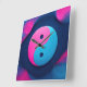 Geometrisches Gleichgewicht: Lebhaftes Yin Yang Muster. Eine stilvolle Grafik mit einer einzigartigen Interpretation des Yin Yang Symbols in Neon Blau und Rosa, die Balance und Dualität repräsentiert.