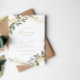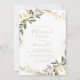 Diese geometrische goldene Party Einladung im Herbst ist perfekt für ein modernes Event. Das Design zeichnet sich durch einen goldfarbenen geometrischen Rahmen mit eleganten grünen Blätter aus.