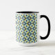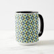 Dieses moderne Muster der Mitte des Jahrhunderts kennzeichnet Gold und blaue Formen.
