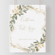 Dieses geometrische goldene Grün wird durch ein individuelles Textschild gekennzeichnet, das sich perfekt für eine moderne Hochzeit oder ein modernes Brautparty eignet. Das Design zeichnet sich durch einen goldfarbenen geometrischen Rahmen mit eleganten grünen Blätter aus.