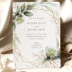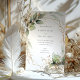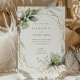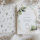 Diese elegante Hochzeitseinladung verbindet den natürlichen Charme des Aquarells mit dem raffinierten Funkeln der Goldakzente der Imitate. Eine geometrische Anordnung verleiht den Bio Eukalyptus-Blätter eine moderne Drehung, die in verschiedenen Jade-, See- und Jägertönen präsentiert werden. Die Einladung ist gerahmt mit zarten goldenen Spritzern und Zweigen, die eine Touch von Luxus. Ideal für eine schicke und zeitgenössische Hochzeit, verzaubert diese Einladung Ihre Gäste mit einer einzigartigen Mischung aus klassischer botanischer Schönheit und modernen Designelementen.