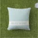 Aqua Herringbone Muster Außenkissen. Die Außendekoration der Küste mit geometrischen Mustern in Aqua Blue und Bootnamensvorlage für Außensitzbereiche. Für Strandhaus oder nautische Wohngestaltung wählen Sie das Material Baumwolle oder Polyester. Dieses personalisierte Kissen ist eine tolle Geschenkidee für sie und ihn, Bootsfahrer und Segler. Terrasse Dekoration Ideen aus der Liebe des Ozeans. © Design y.BEE SEA