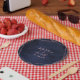 Geometrisches Hochzeitsmonogramm für Navy Blue & R Pappteller