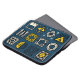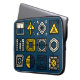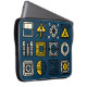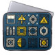 Ein Laptop-Ärmel mit einem Gitter geometrischer Icons, das ein modernes, technisch inspiriert Design für Profis oder Studierende bietet.