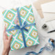 Geometrisches Ikat-Muster aus Gold und Türkis Geschenkpapier