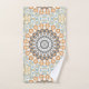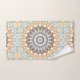 Geometrisches Mandala in Orange, Grau und Blau Badhandtuch Set