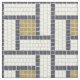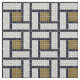 Elegante römische Motive aus Stein Mosaik geometrische Quadrate und Formen Muster, Weiß Schwarz und Gold Töne.