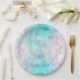 Die geometrischen Würfel sind in einem Muster angeordnet und in wechselnden Pastellblau-, Rosa- und lila-Farbtönen gefärbt, was ihm einen strahlenden Glashimmel verleiht. Die Formen sind in Imitaten Gold Glitzer umrissen.