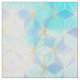 Die geometrischen Würfel sind in einem Muster angeordnet und in wechselnden Pastellblau-, Rosa- und lila-Farbtönen gefärbt, was ihm einen strahlenden Glashimmel verleiht. Die Formen sind in Imitaten Gold Glitzer umrissen.