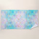 Die geometrischen Würfel sind in einem Muster angeordnet und in wechselnden Pastellblau-, Rosa- und lila-Farbtönen gefärbt, was ihm einen strahlenden Glashimmel verleiht. Die Formen sind in Imitaten Gold Glitzer umrissen.