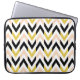 Trendy Laptop-Ärmel mit Imitaten Glitzer Gold, Schwarz, Pachy Rosa, weiß Zickzack Muster.