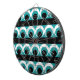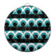 Geometrische Musterillustrierung mit Streifen, Kreisen und runden Formen in türkisfarbenen, schwarz-weißen Farben