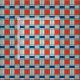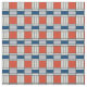 Dieser farbenfrohe Stoff weist ein geometrisches Retro-Muster in Rot, Blau, Hellgrau und Schwarz auf.
