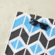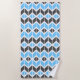 Dieses Strandtuch weist ein buntes geometrisches Herringbone-Muster in Blau, Dunkelgrau und Weiß auf.