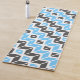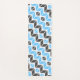 Diese Yogamatze weist ein buntes geometrisches Herringbone-Muster in himmelblau, dunkelgrau und weiß auf.