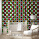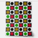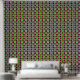 Gestreiftes geometrisches Retro Classic-Kreuz rote, grüne, gelbe, schwarze und weiße Punkte Schwarz und Weiß auf grauen und schwarzen Quadraten Mustermuster-Tapete