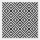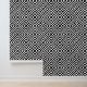Diese Tapete weist ein gewagtes geometrisches Muster in einem monochromen Farbschema auf. Auf einem sauberen, weißen Hintergrund bilden die miteinander verbundenen schwarzen Linien eine sich wiederholende Reihe von Diamanten- und Kreuzformen. Der grafische Stil erinnert an die Eleganz des Art Déco, mit scharfen Linien und starken Formen. Dieses moderne und dennoch klassische Design kann jeden Raum vergrößern und Ihre Dekoration durch Eleganz und Vielseitigkeit bereichern.