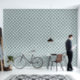 Geometrisches Muster für weiches Grün und Schiefer Tapete