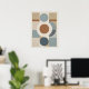 Ein modernes abstraktes Plakat mit fett geometrischen Kreisen und Formen in Erdtönen von Terrakotta, Beige und Blau. Diese zeitgenössische Wandkunst verbindet einen inspirierten Stil aus der Mitte des Jahrhunderts, der Wohnzimmer, Schlafzimmer oder Büroräume mit minimalistischer Eleganz unterstreicht.