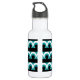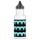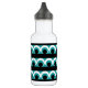 Geometrische Musterdarstellung mit Streifen, Kreisen und runden Formen in den Farben Türkis, Schwarz und Weiß