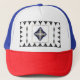 Diese Kappe zeichnet sich durch ein modernes, abstraktes geometrisches Muster aus, das sich durch eine wiederkehrende Diamant- und Linienführung auszeichnet. Das dunkelblaue und knusprige weiße Muster wird an der Vorderseite deutlich sichtbar angezeigt, während die rote Brille und die Rückseite ein kühnes, patriotisches Ambiente verleihen. Es ist ein stilvolles Accessoire, das perfekt dazu geeignet ist, jedem lässigen Look eine Touch von einzigartigem Stil und einen Pop von Farbe hinzuzufügen.