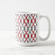 Geometrisches Ornament in rot und grau auf weiß. Kaffeetasse