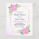 Diese Brautdusche lädt mit einem Aquarell Blumendesign mit rosa Hydrangea-Blume, Blätter und einem vergoldeten geometrischen Rahmen der Imitate ein. Es stehen auch passende Brautparty-Vorräte zur Verfügung.