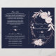 Elegante Rose Gold Weiße Blume Geometrisches Hochzeitsdesign. Es verfügt über elegante Imitate Rose goldweiße Blume, Rose goldene geometrische Rahmen, Rose Gold Blumenteiler auf der Rückseite, alle auf einem dunkelblauen Hintergrund. Verwenden Sie das Tool Personalize, um Ihre Informationen hinzuzufügen, um die Hintergrundfarbe zu ändern. Für passende Artikel, besuchen Sie bitte meine Rose Gold White Blume Collection.