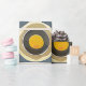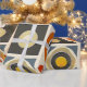 Dieses Kunstwerk zeichnet sich durch ein lebendiges und kühnes Muster von konzentrischen Kreisen und Quadraten aus, die in einem strukturierten Rasterformat angeordnet sind. Das Design präsentiert eine inspirierte Farbpalette mit warmen Orangen, tiefbraunen, gelben und cremefarbenen Orangen, die ein nostalgisches und dennoch modernes Ambiente schafft. Jeder Kreis ist perfekt in seinem Quadrat zentriert, wobei die sich wiederholenden Muster eine rhythmische und ausgewogene Komposition erzeugen. Die Verwendung starker, kontrastierender Farben und geometrischer Formen verleiht dem Stück ein dynamisches und visuell ansprechendes Aussehen, das an das moderne Design der Mitte des Jahrhunderts erinnert.