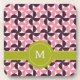 Dieser Untersetzer ist mit einem farbenfrohen Retro-geometrischen, rosa bordeauxfarbenen Blumenmuster mit einem limiengrünen Monogramm versehen. Das Monogramm Initial kann leicht personalisiert werden. Auch Karo aus meiner Kollektion für passende Artikel!