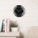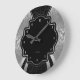 Geometrisches Schwarz-Silber-Damasdesign Große Wanduhr