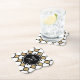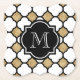 Dieser Untersetzer weist ein gewagtes geometrisches Quarrefolienmuster in schwarz, weiß und Imitat Gold Glitzer auf. Personalisieren Sie es mit Ihrem weißen Monogramm in einem schwarzen Rahmen.