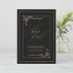 Elegante, trendige goldene Monogramm-Initialen mit schwarz-goldenen geometrischen Glam-Bug-Einladungen sind perfekt für jede klassische und raffinierte Zeremonie. Dieses exquisite, stilvolle und geometrisch anmutende Design ist perfekt für das trendige und stilvolle Mädchen oder jeden. Passen Sie dieses Design mit Ihren eigenen Nachrichten und personalisierten Informationen an. Alle Designs sind gedruckt.