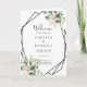 Dieses Sommer blühende Blattwerk gefaltet Hochzeit ist perfekt für eine einfache Hochzeit. Das Design umfasst Aquarellgrün-Blätter und rosa Blume, die in kunstvoll aussehenden Bouquets gebündelt sind und einen geometrisch schwarzen Rahmen schmücken. Geben Sie ein Angebot oder eine kurze Nachricht, die Reihenfolge des Dienstes, Hochzeitsfeier und Dankeschön Nachricht.